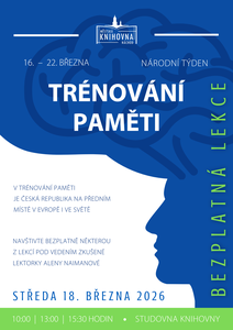 Ve středu 18. března se u příležitosti Národního týdne trénování paměti můžete bezplatně zúčastnit některé z lekcí s Alenou Naimanovou (10:00, 13:00 a 15:30 hodin) ve studovně knihovny.