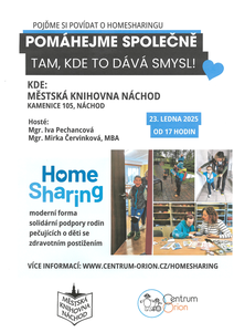 Ve čtvrtek 23. ledna pořádáme od 17.00 hodin ve studovně povídání u kávy s Mgr. Ivou Pechancovou a Mgr. Mirkou Červinkovou, MBA o homesharingu. Jedná se o moderní formu solidární ...