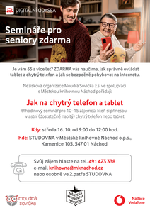 Ve spolupráci s neziskovou organizací Moudrá Sovička nabízíme seminář pro seniory ve věkové kategorii 65+, kteří se chtějí naučit, jak správně ovládat tablet nebo chytrý telefon a jak se ...