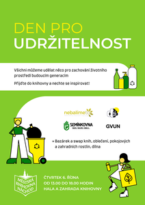 Všichni můžeme udělat něco pro zachování životního prostředí budoucím generacím. V rámci Týdne knihoven, jehož letošním tématem je udržitelnost, jsme pro vás na čtvrtek 6. října připravili odpoledne plné inspirace. Od ...