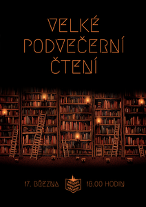 Na čtvrtek 17. března pro vás od 18.00 hodin chystáme tradiční Velké podvečerní čtení. Přijďte si navzájem předčítat ze svých oblíbených knih v pohodové atmosféře s drobným občerstvením. Těšíme se na vás v oddělení ...