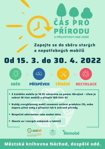 Zapojte se s námi do sběru nepotřebných mobilních telefonů pro dobrou věc. Sběr probíhá do 30. dubna u příležitosti Dne země s cílem sesbírat 10 000 mobilů a tím pomoci nejen ...