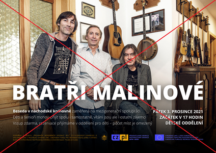 V pátek 3. prosince vás od 17.00 hodin zveme do dětského oddělení na setkání s náchodskými rodáky, bratry Malinovými, tedy bendžistou Lubošem (Druhá tráva), kytaristou Pavlem a houslistou Josefem. Uplynulo ...