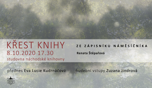 Ve čtvrtek 8. října vás od 17.30 hodin zveme do studovny na večer poezie s křestem sbírky Renaty Štěpařové "Ze zápisníku náměsíčníka" v provedení členky divadelního souboru DRED Evy ...