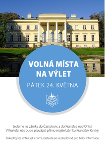 Nabízíme volná místa na výlet s Náchodskou univerzitou volného času. V pátek 24. května jedeme na zámky do Častolovic a do Kostelce nad Orlicí. V Kostelci nás bude provázet ...