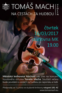 Ve čtvrtek 16. března vás zveme na koncert houslového virtuosa Tomáše Macha. Součástí večera bude povídání o cestách za hudbou po Japonsku a Indii. Koncert začíná v 19 hodin ve studovně. ...