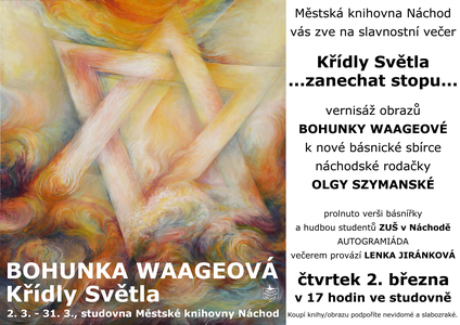 Vernisáž výstavy obrazů Bohunky WAAGEOVÉ k nové básnické sbírce náchodské rodačky Olgy SZYMANSKÉ bude prolnuta verši básnířky a ...
