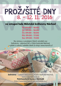 Od 26. do 30. dubna vás zveme na výstavu prací účastnic z náchodských kurzů patchworku, pořádaných od roku 2013 v domě Církve bratrské s lektorkami JUDr. M. Máchovou a Mgr. E. ...