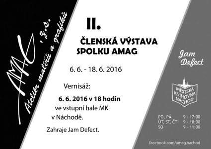 Od 6. června bude v hale knihovny k vidění II. členská výstava spolku AMAG. Vernisáž se uskuteční 6. 6. v 18 hodin, zahraje Jam Defect. Výstava potrvá do 18. června.