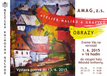 Zveme vás na výstavu obrazů náchodských výtvarníků ze spolku AMAG. Vernisáž se uskuteční 1. června v 16 hodin v hale knihovny. Výstava potrvá do 13. června.