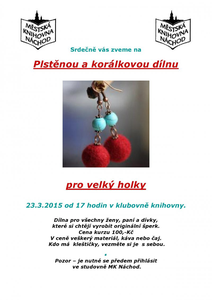 Srdečně Vás zveme na plstěnou a korálkovou dílnu pro velký holky. 23.3.2015 od 17 hodin v klubovně knihovny. Dílna pro všechny ženy, paní a dívky, které si chtějí vyrobit originální šperk. ...