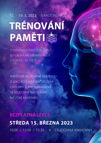 Od 12. do 19. března probíhá Národní týden trénování paměti, ve kterém je Česká republika na předním místě v Evropě i ve světě. Při této příležitosti se ve středu 15. března můžete bezplatně zúčastnit některé z lekcí (10.00, 13.00 a 15.30 hodin) pod vedením zkušené lektorky Aleny Naimanové ve studovně knihovny.