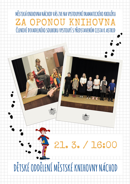 Pro nemoc musíme odložit středeční vystoupení divadelního kroužku Za oponou knihovna, který u příležitosti loňského výročí narození Astrid Lindgrenové nastudoval hru s názvem Cesta k Astrid inspirovanou dílem této autorky. O náhradním termínu vás budeme informovat. Děkujeme za pochopení.