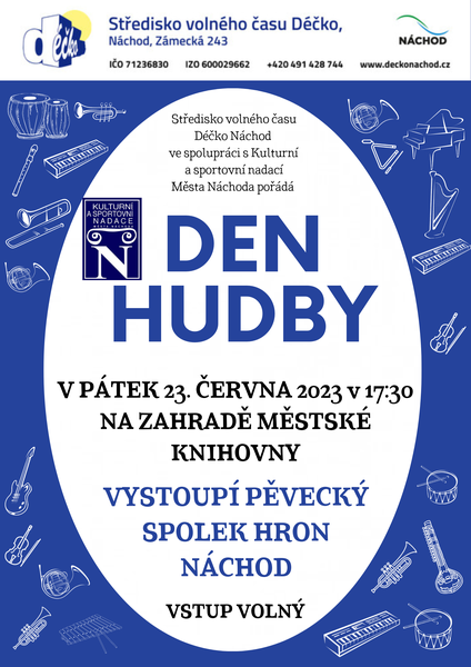 V pátek 23. června oslavíme od 17.30 hodin Evropský den hudby vystoupením Pěveckého sboru Hron na zahradě za knihovnou.