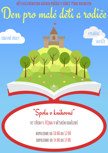 Na středu 4. října chystáme Den pro malé děti a rodiče – Spolu v knihovně. Od 10 do 12 hodin a od 14 do 17 hodin jsme pro vás v dětském oddělení připravili bohatý program. Čekají vás zábavné úkoly, soutěže, vyrábění a spousta knížek.