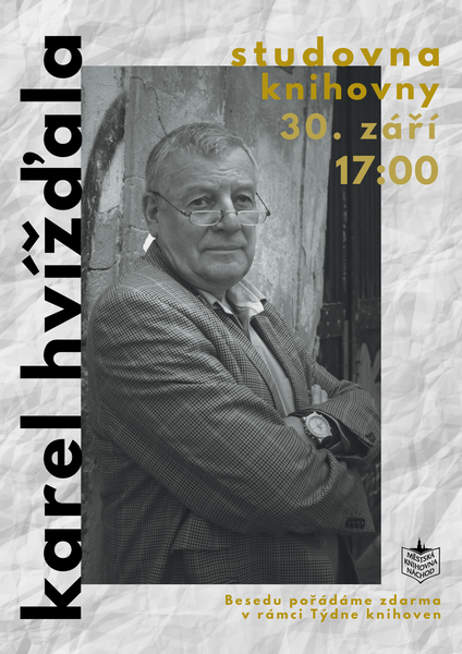 V pondělí 30. září pořádáme od 17.00 hodin ve studovně besedu s novinářem, spisovatelem a dramatikem Karlem Hvížďalou, držitelem Ceny Egona Erwina Kische a Ceny Ferdinanda Peroutky, autora rozhovorů s mnoha významnými osobnostmi, například s architektkou Evou Jiřičnou, se spisovatelkou a nakladatelkou Zdenou Salivarovou a jejím mužem, slavným náchodským rodákem Josefem Škvoreckým, s hercem a spisovatelem Jiřím Suchým, s dramatikem Josefem Topolem a mnoha dalšími. V současnosti spolupracuje mj. s časopisem Xantypa a týdeníky Respekt či Reflex. Besedu moderuje novinář Zdenko Pavelka.
