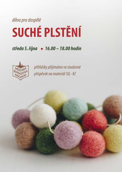Ve středu 5. října se v 16.00 hodin sejdeme v dílně dětského oddělení, kde budeme vyrábět jednoduché šperky a dekorace z ovčího rouna.