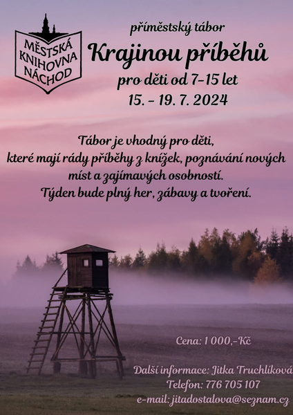 Dětské oddělení naší knihovny připravuje knihovní příměstský tábor, letos pod názvem Krajinou příběhů. Máte dítě ve věku 7 – 15 let, které má rádo příběhy z knížek, výlety v přírodě, poznávání nových míst a osobností a vyhovuje vám termín 15. – 19. července? Tak neváhejte a ozvěte se nám na e-mail jitadostalova@seznam.cz nebo se zastavte pro přihlášku a další informace v dětském oddělení. Budeme se moc těšit.