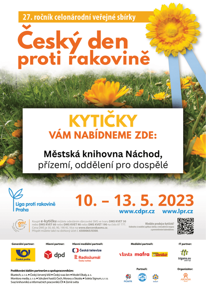 Od středy 10. do soboty 13. května se opět připojíme k Českému dni proti rakovině prodejem symbolických kytiček, jejichž koupí v půjčovně pro dospělé podpoříte sbírku, kterou již po 27. pořádá Liga proti rakovině.