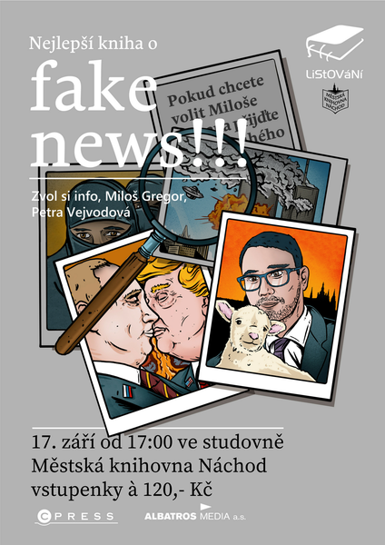Média, politici, sociální sítě - ze všech těchto zdrojů se na nás neustále valí dohady o tom, kdo, jak a proč se nás snaží dezinformovat. Co ale často opakovaná spojení fake news, dezinformace a alternativní fakta zahrnují? Jedná se o fenomén posledních let, nebo jsou tu s námi, šikovně skryté, už dlouhá staletí? Jak je možné, že fungují? Kdo a proč je vypouští? A co je hlavní, jak se proti nim můžeme bránit? Hrají Jiří Ressler a Petra Bučková, zúčastní se i jeden z autorů knihy Miloš Gregor. Vstupné 120,- Kč.