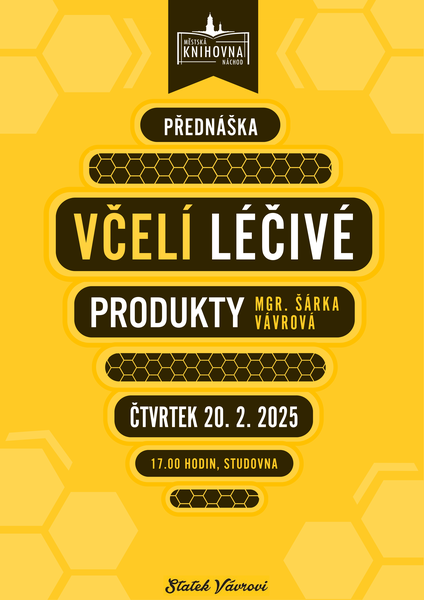 Odpovědi na tyto a mnohé další otázky nám na přednášce s ochutnávkou poskytne Mgr. Šárka Vávrová. Včelí produkty ze Statku Vávrovi bude následně možné zakoupit. Vstup volný.