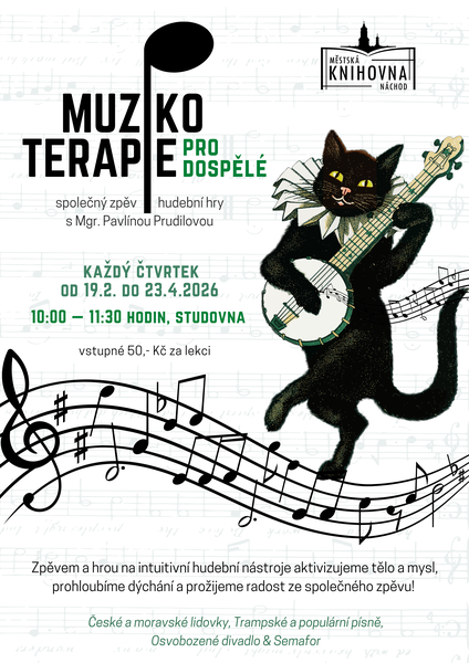 Od 19. února se až do 23. dubna budeme vždy ve čtvrtek scházet od 10:00 do 11:30 hodin ve studovně, kde pomocí hudebních her opět aktivizujeme tělo a mysl.