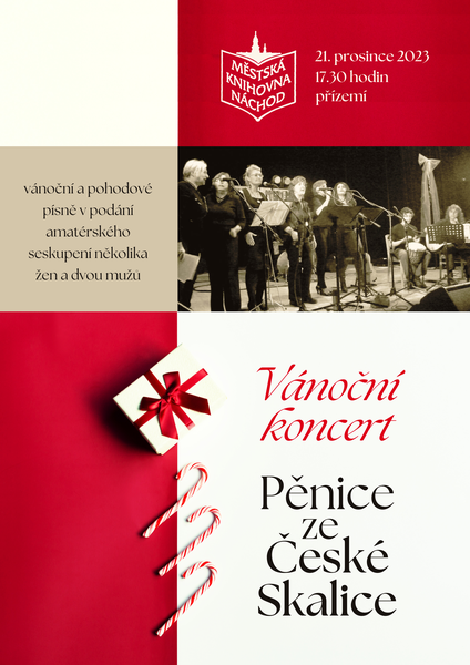 Ve čtvrtek 21. prosince vystoupí od 17.30 hodin v půjčovně pro dospělé amatérské pěvecké seskupení několika žen a dvou mužů z České Skalice. Na koncertu zazní především vánoční a pohodové písně; vstupné je dobrovolné.