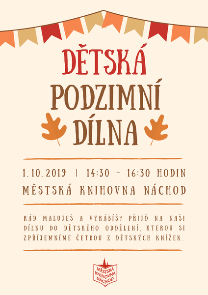 Rád maluješ a vyrábíš? Přijď na naši dílnu do dětského oddělení, kterou si zpříjemníme četbou z dětských knížek. Začínáme ve 14.30 hodin v dílničce dětského oddělení.