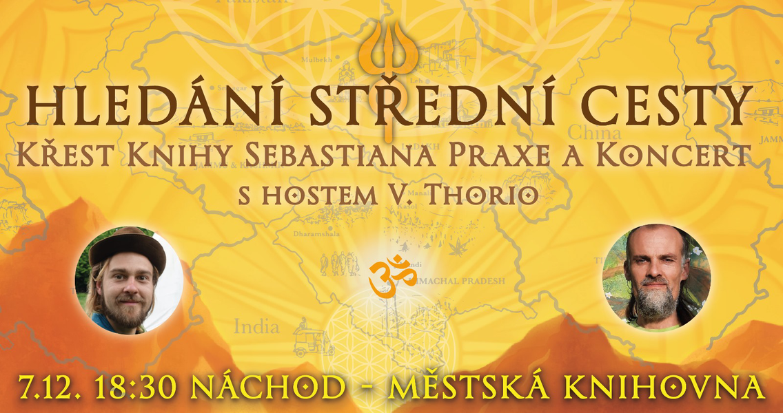 Ve čtvrtek 7. prosince proběhne od 18.30 hodin v dětském oddělení domácí křest knihy náchodského rodáka Sebastiana Praxe. Kniha psaná na motivy beatnické generace je sbírkou příběhů moderní subkultury hippies a rainbow. Zároveň je výpravou do indické Himálaje za tibetskými buddhisty, mystiky, cestovateli, jogíny i obyčejnými lidmi. Hlavním programem bude diskuze s Vithoriem – vizionářem a zakladatelem společenství Kmene Země, který žije na rodovém statku a zajímá se o přirozenost ve všech aspektech života. Na křest knihy bude navazovat krátké hudební vystoupení Kmene Země a během večera bude možné zakoupit knihu, zpěvník, domácí masala čaj a další díla hostů. Vstupné dobrovolné (doporučené 100,- Kč).