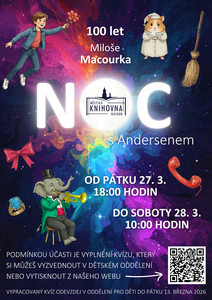 Dětské oddělení zve děti ve věku 8 – 12 let na Noc s Andersenem, která se uskuteční v pátek 27. března 2026. Čeká nás večer plný čtení, her a ...