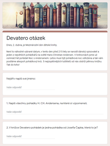 U příležitosti Mezinárodního dne dětské knihy jsme v karanténě vyhlásili soutěž pro děti Devatero otázek. Moc děkujeme dětem, které se zapojily. Moc děkujeme dětem, které se zapojily. Nejúspěšnější z ...