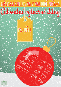 Jako každý rok i letos pořádáme čtyři předvánoční dílny, jichž se děti budou moci zúčastnit poprvé v Den pro dětskou knihu 2. prosince od 9:00 do 12:00, a následně pak každou ...
