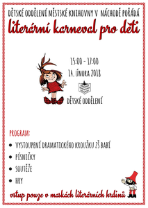 Ve středu 14. února zveme děti a jejich rodiče na literární karneval, který se uskuteční od 15:00 do 17:00 v dětském oddělení knihovny. Čeká vás odpoledne plné zábavy, písniček, her a soutěží. ...