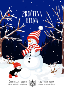 Ve čtvrtek 25. ledna zveme všechny kreativní děti na tvoření s tématem „Sněhuláci,“ které bude probíhat od 14.30 do 16.30 hodin v dětském oddělení. Příspěvek na materiál činí 20,- ...