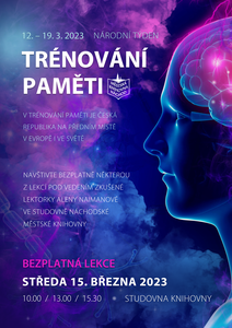 Od 12. do 19. března probíhá Národní týden trénování paměti, ve kterém je Česká republika na předním místě v Evropě i ve světě. Při této příležitosti se ve středu 15. března můžete bezplatně zúčastnit ...