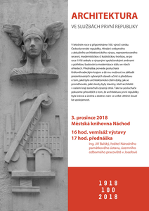 V pondělí 3. prosince vás od 16.00 hodin zveme na vernisáž výstavy Architektura ve službách první republiky, kterou připravil Národní památkový ústav v rámci oslav stého výročí vzniku Československa. Její regionální ...
