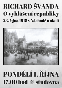 V pondělí 1. října vás od 17.00 hodin zveme do studovny na přednášku Richarda Švandy O vyhlášení republiky 28. října 1918 v Náchodě a okolí.