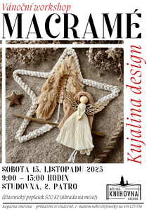 V sobotu 15. listopadu pořádáme ve studovně od 9:00 do 13:00 hodin workshop, na kterém nás regionální umělkyně Aneta Kujalová (Kujalina design) naučí vytvářet vánoční dekorace z provázků. Počet míst je ...
